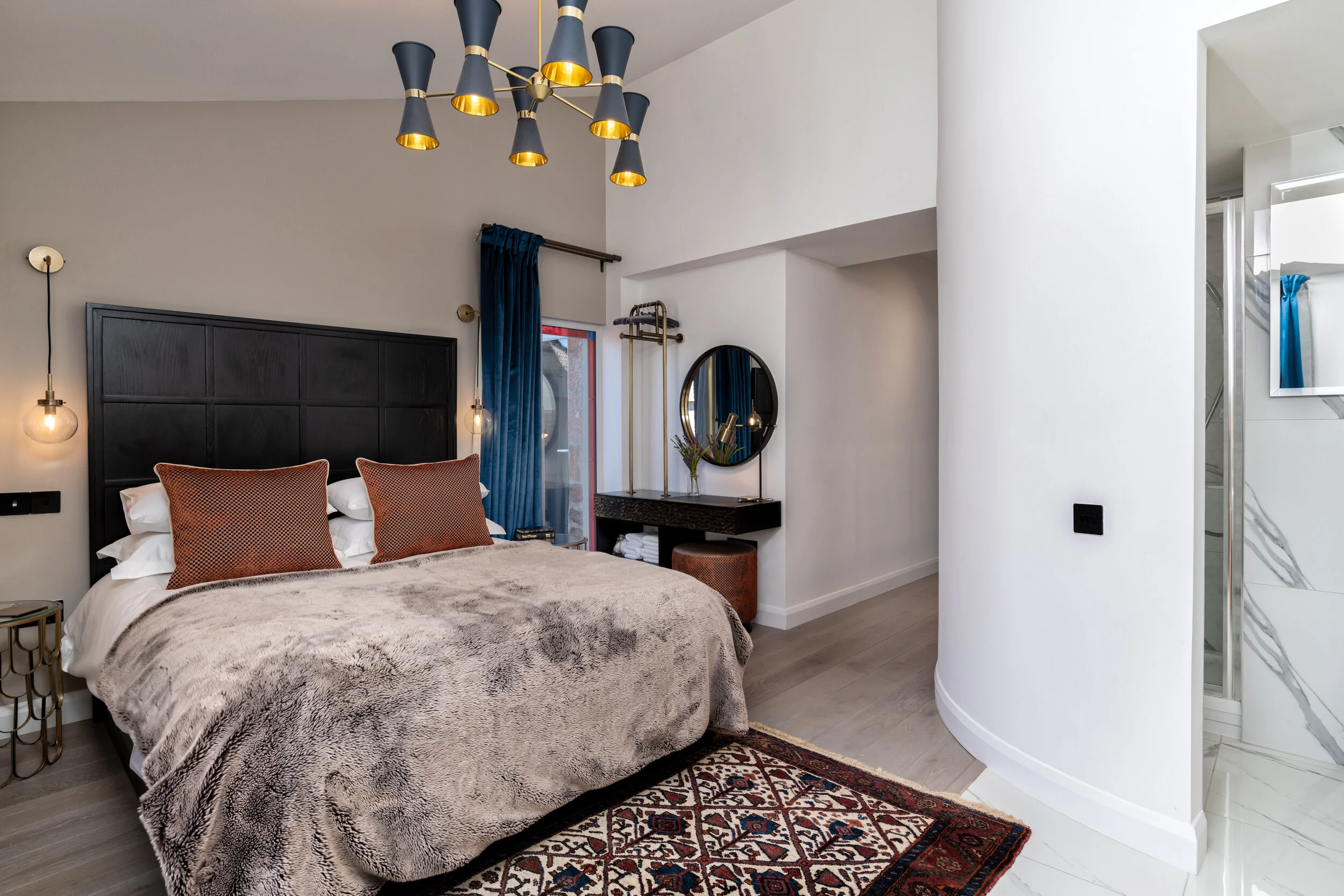 Downstairs features large copper tubs, double spa showers, underfloor heating, hand made designer furnishings, Italian marble kitchens, Nespresso Vertuo coffee machines plus private patios for dining al fresco.